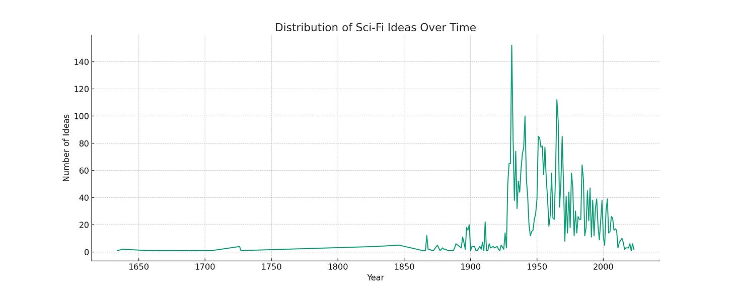 You can see the decline of new SciFi ideas in the chart below: